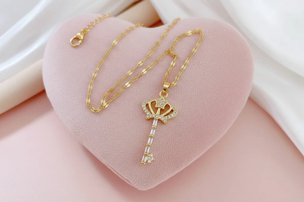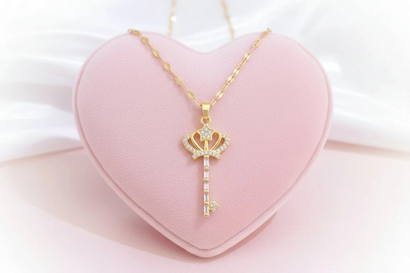 ​ Ce collier met en valeur un pendentif clé au design royal et raffiné, symbole d’accès, de pouvoir et de nouveaux départs. Conçu en acier inoxydable, hypoallergénique, il offre une résistance exceptionnelle et une finition dorée lumineuse qui conserve durablement son éclat.
