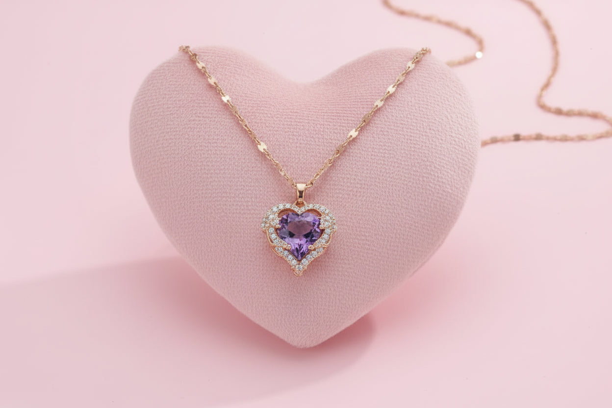 Son design texturé et sa pierre de cœur violette facettée le rendent exceptionnel. C'est un bijou qui se démarque, assurant que votre cadeau soit aussi unique et spécial que la personne à qui vous l'offrez.
