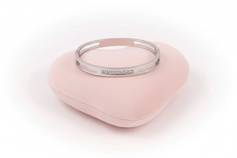 Sublimez votre poignet avec ce bracelet élégant en acier inoxydable, délicatement orné d’oxydes de zirconium qui captent la lumière à chaque mouvement.