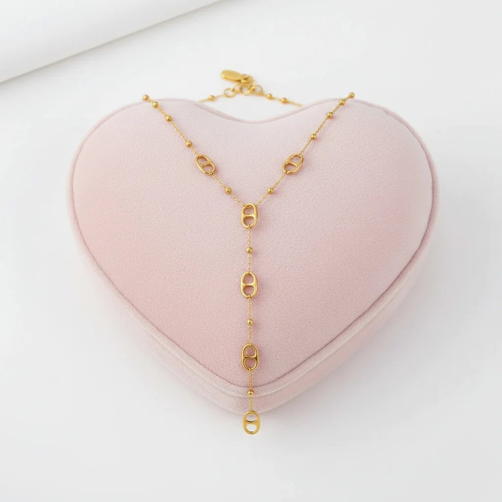 Affirmez votre allure avec notre collier "Épuré Doré", une création contemporaine en acier inoxydable qui célèbre l'élégance des formes géométriques. Ce bijou se distingue par son pendentif sautoir de 11 cm, composé d'éléments ajourés aux lignes épurées, évoquant une danse harmonieuse de cercles et d'ovales. Ce jeu de volumes et de transparence crée un effet visuel aérien et lumineux, sublimant avec finesse votre port de tête. Pensé pour s'adapter à toutes vos envies, ce collier est doté d'une chaîne à maillons larges réglable de 40 à 45 cm, pour un parfait tombé sur le décolleté. Finition or plaqué véritable (PVD) par ionisation, assurant une excellente résistance à l'usure et à l'oxydation. Entièrement hypoallergénique, garanti sans nickel, sans plomb et sans cadmium, ce bijou respecte les peaux les plus sensibles tout en offrant un confort absolu au quotidien. À la fois tendance et intemporel, "Épure Doré" s'impose comme un accessoire de mode, capable de rehausser une tenue décontractée avec subtilité ou d'apporter une touche sophistiquée à une robe de soirée.